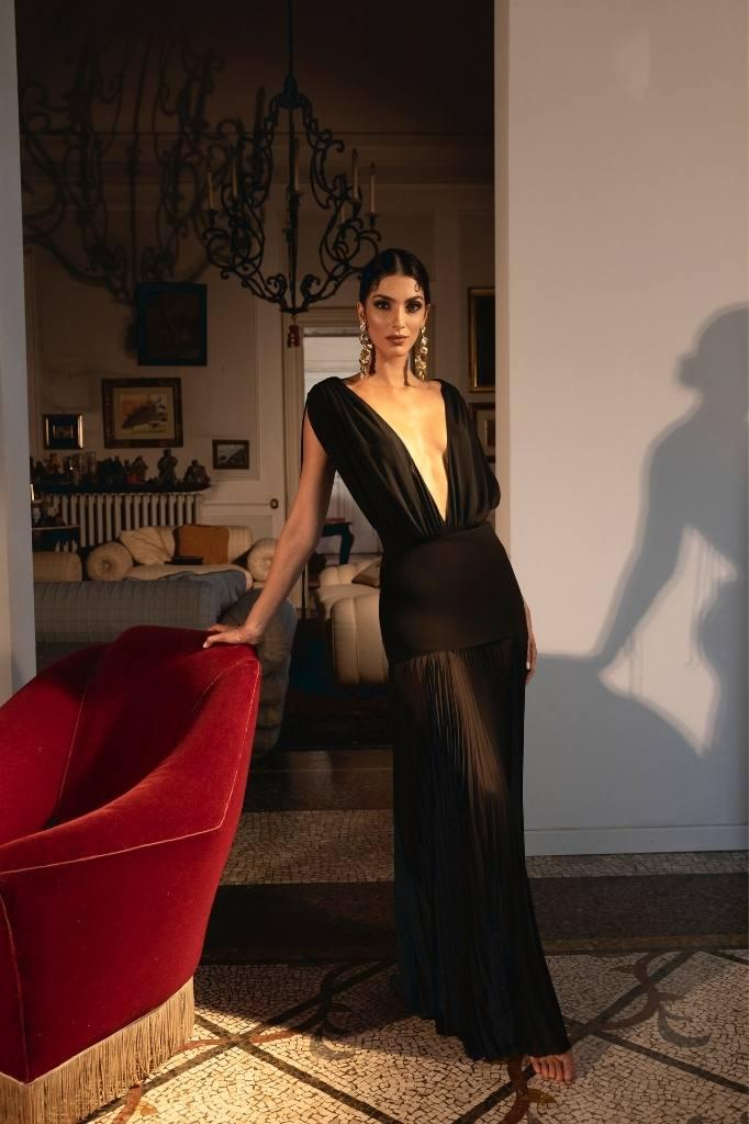 È il regalo ideale per chi apprezza l’eleganza essenziale, ma non rinuncia a un dettaglio ricercato. Un abito pensato per occasioni speciali, ma anche per serate estive dal fascino sofisticato, capace di accompagnare chi lo indossa con naturalezza e stile.